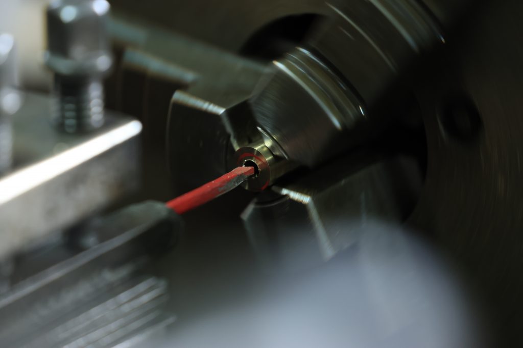 内径の次は外形を整えて行きます。専用の治具を製作の上、ブレないように加工。