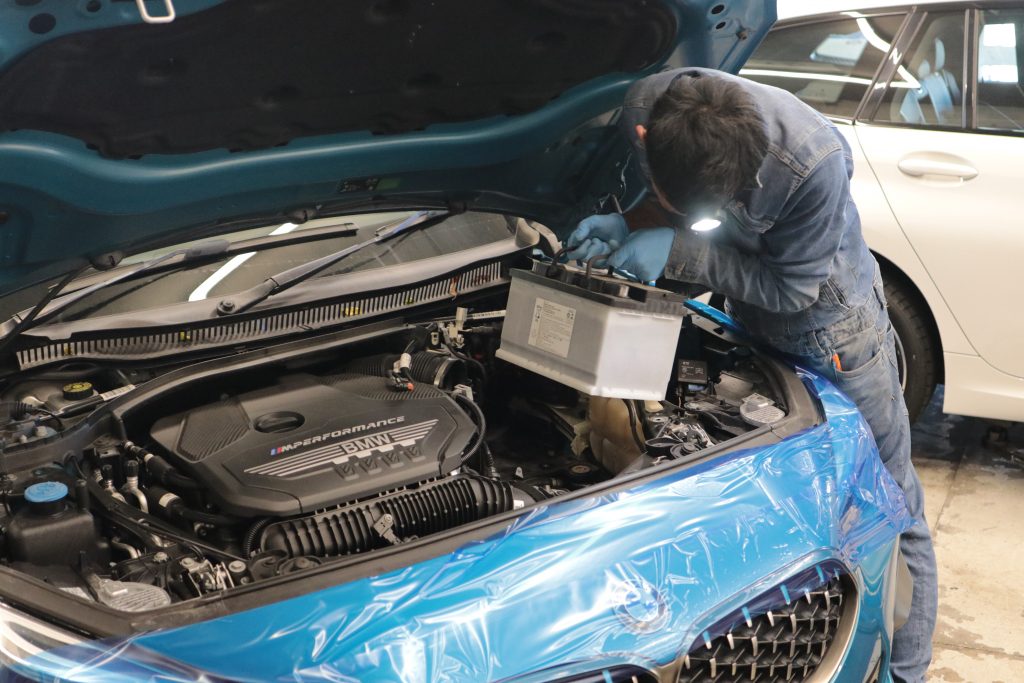 続いてエンジン始動しない。との事でご入庫のM235iはバッテリーの消耗が原因でした。
