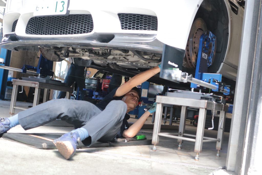 年間走行距離が少ないお車ですが細かくチェックしていきます。内視鏡カメラを使って見えにくいチャーミングポイントのチェックも。