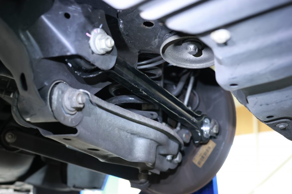 フロントロアアームはMなどは純正でピロですね。こちらも直進安定性に貢献し、轍でもステアリングがブレにくいです。