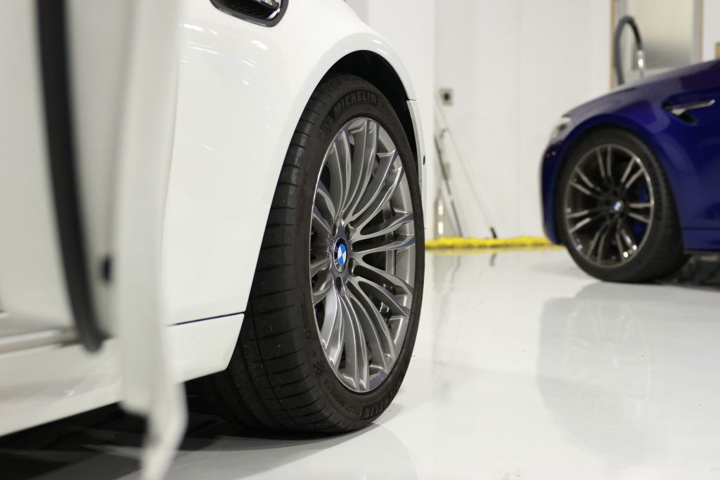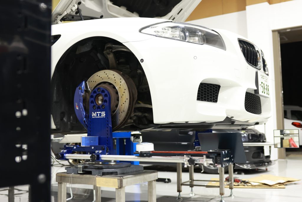 全ブッシュ緩めてからアライメント調整。M5はコンフォートカー極みの様なモデルなのでM3など他のMモデルとはブッシュの扱いが全然違います。アームの動きも流石だなーと感心します。