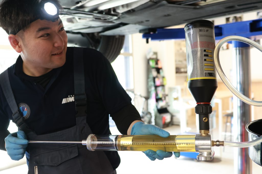 お店に置いていると『これはなに?』とお客様にも聞かれるこの工具。ギアオイル用のオイルポンプです。BMW純正品です。