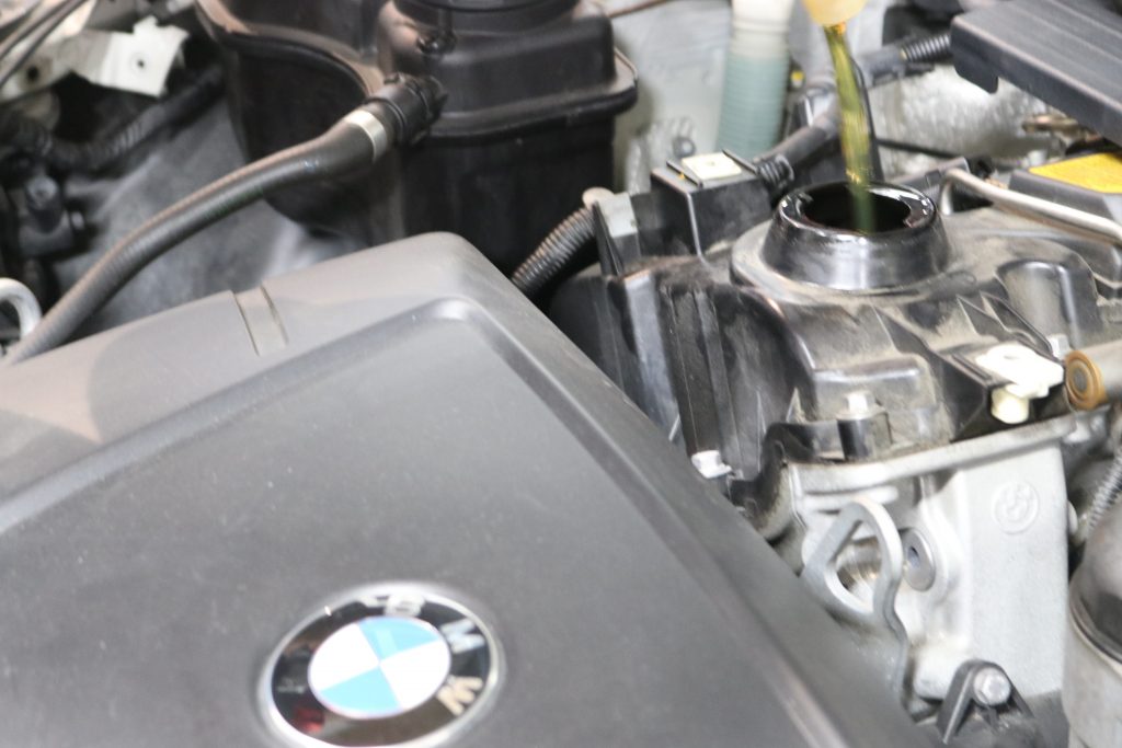 BMWのマーク入れてオイルを注ぐ写真を撮ろうと思ったのですが凄く中途半端な写真になってしまいました