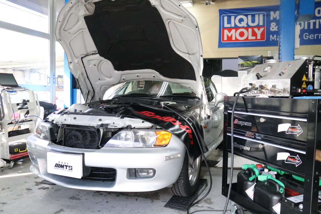 インジェクター洗浄。この辺りの年式ですと洗浄前と洗浄後とではマフラー音が変わるのが良く分かります