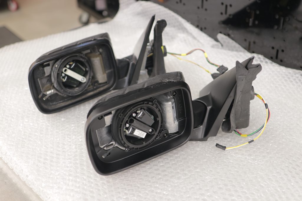 左のドアミラーは動作不良のため交換。E90前期は廃盤ですが、E46はまだ供給があります。