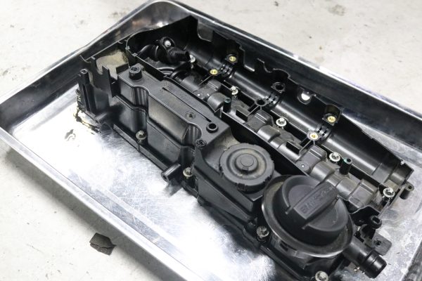 早速お車を拝見させて頂くとヘッドカバーとオイルフィルター付近より大量にオイルが漏れております。