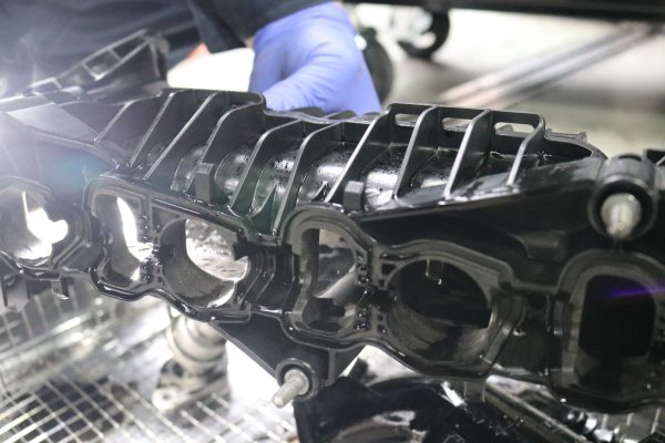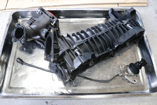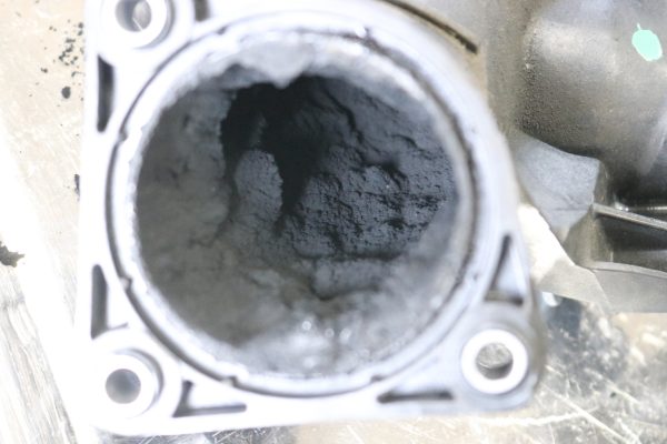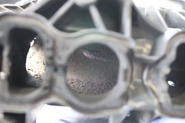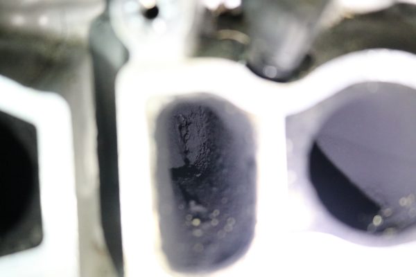 写真を見るとEGRからのインテークライン流入部の煤の溜まり具合がよく分かると思います。