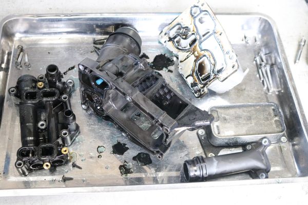 オイルフィルターハウジングにはATオイルのヒートエクスチェンジャー/エンジンオイルのヒートエクスチェンジャーが組み合わさっております。